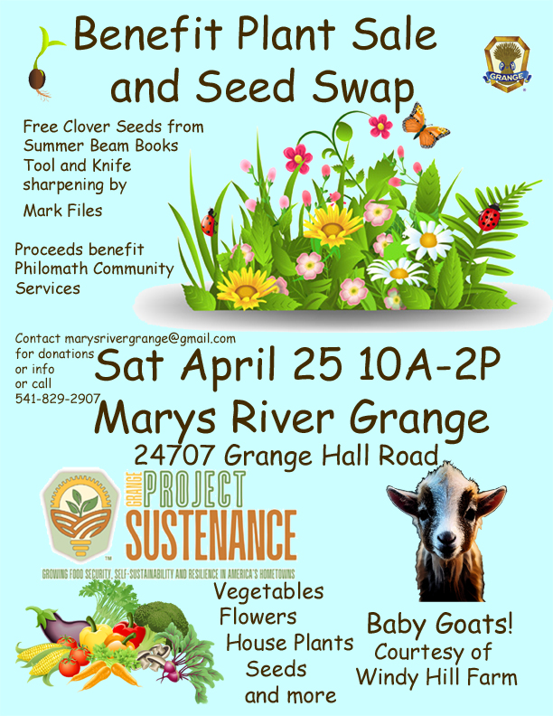 We have added a Donate! page, which goes to Paypal. Marys River Grange is a 501c8, so not all donations are tax-deductible. Please consult a tax professional to determine if your contribution may qualify (it must be directed toward a 501c3 eligible purpose). You may request the purpose your donation is to used for.